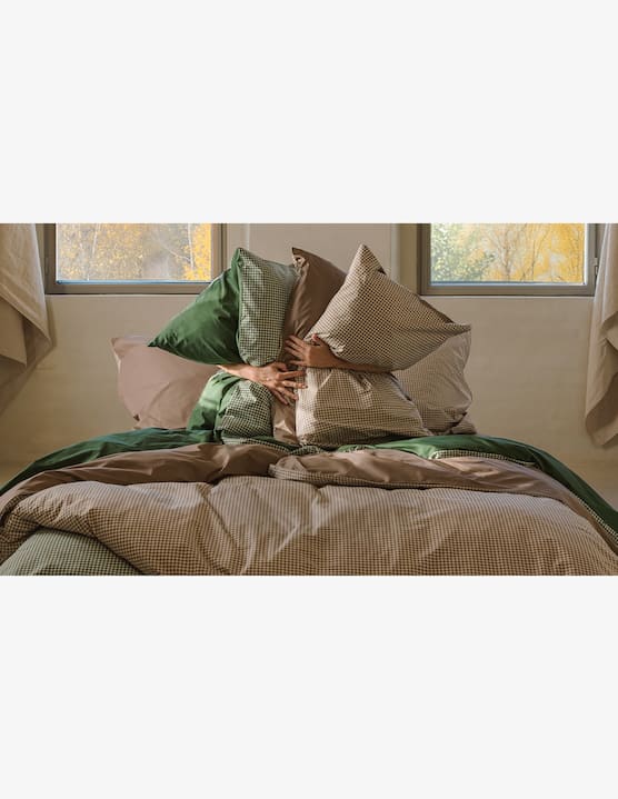Basta cambiare il rivestimento dei cuscini per avere ogni giorno una stanza da letto rinnovata con il minimo sforzo. Prodotte in diversi tessuti come cotone, percalle di cotone, lino o canapa, disponibili in tinta unita o ricercate fantasie, possono essere abbinate alle lenzuola tono su tono o mixate per creare contrasti cromatici d'effetto.