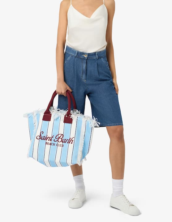 Su Rinascente la scelta è davvero ampia, dai teli mare agli occhiali da sole. Per quanto riguarda le donne, uno degli accessori da spiaggia più in voga è senza dubbio l'iconica borsa a mano di MC2 Saint Barth. Spesso realizzata in paglia intrecciata o tessuto in tela, è munita di pratici manici per il trasporto.